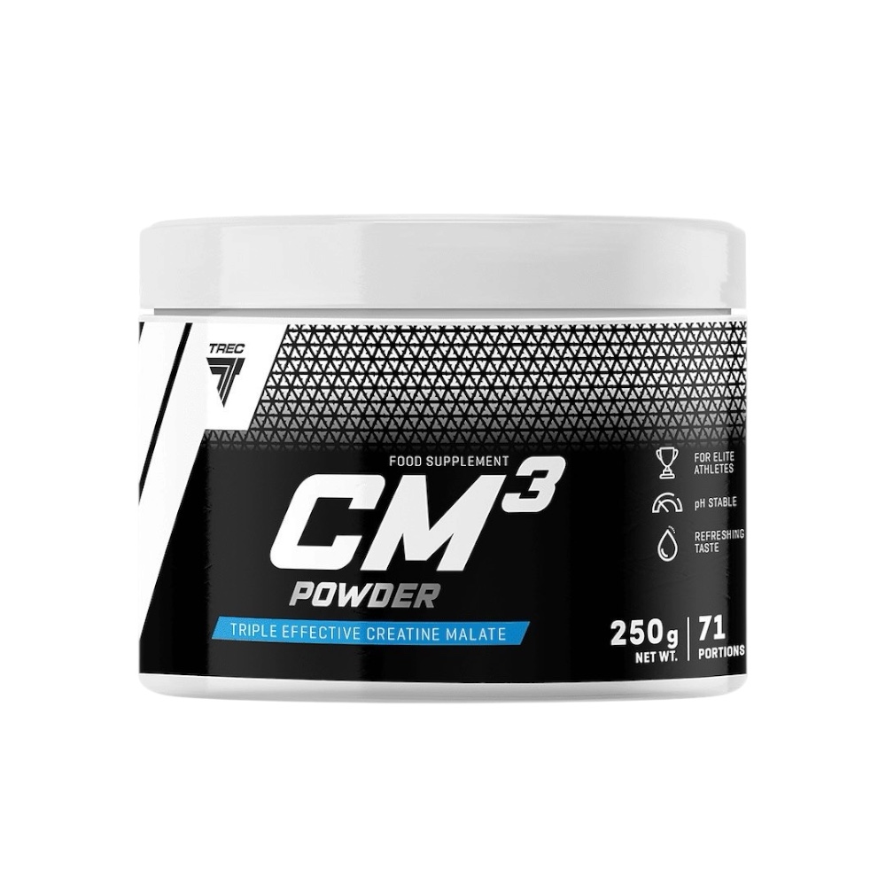 TREC NUTRITION CM3 CREATINE MALATE is a supplement that contains pure creatine malate. This is a form of creatine, which is resistant to the acid environment of the digestive tract and which dissolves very well. TREC NUTRITION CM3 is proven to increase physical performance successive bursts of short-term, high-intensity exercise. Recommended daily serving is 7g.